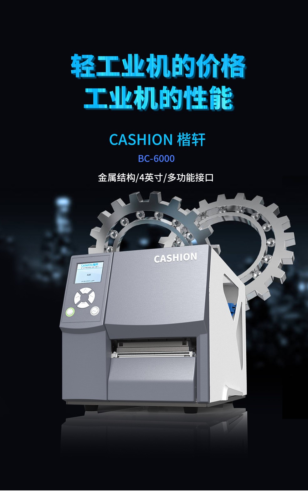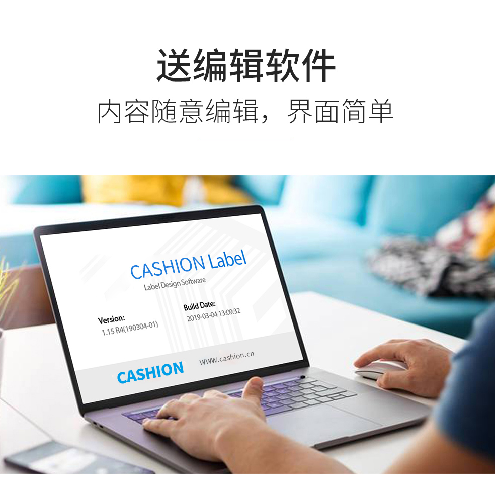 - 自动感测节省使用耗材的CASHION C-204条码打印机